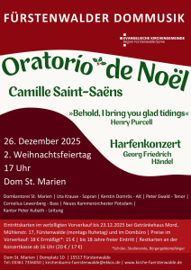 Dom St. Marien Domplatz 10, Fürstenwalde/Spree, Brandenburg, DeutschlandHarfenkonzert von G. F. Händel, Oratorio de Noël von Camille Saint-Saëns, Weihnachtskantate von Henry Purcell